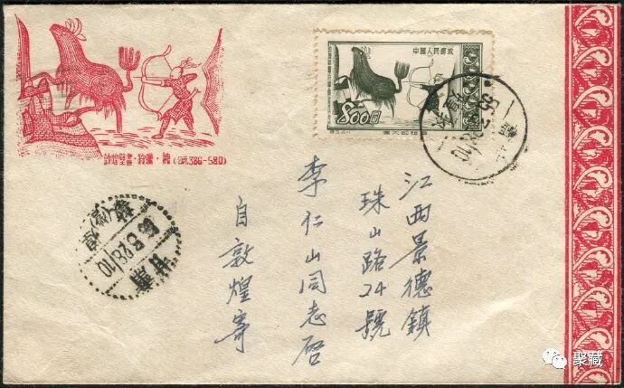 他认为此次春拍的最大亮点是序号792“1955年3月28日贴特3邮票一封一票实寄封(图2)4件,由甘肃敦煌寄江西景德镇,背面均有景德镇4月9日或10日到达戳,3件有南昌4月8日机盖中转戳。新中国早期原地实寄封之龙头,罕见”拍品,以5000元起拍,108100元成交,创原地实寄封价格成交纪录。