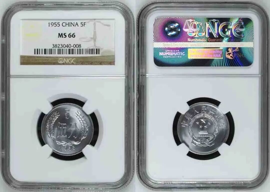 1955年5分、1956年2分、1956年5分、1957年5分、1959年1分,模具制作精良,高浮雕、镜面抛光,其艺术的唯美程度,任何其他硬币都难出其右,被称为中国硬币五大珍。