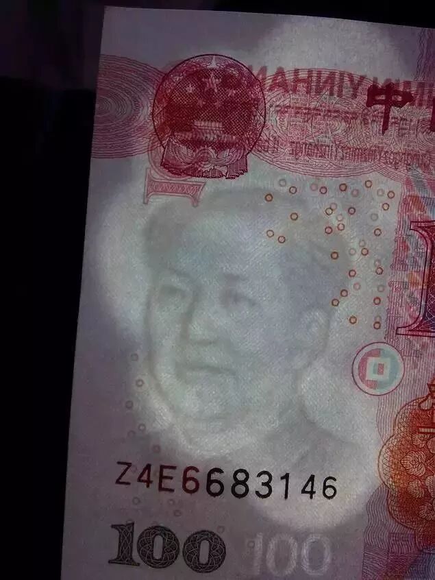 特征:人民币出现“哈哈”字样等莫名其妙的水印。