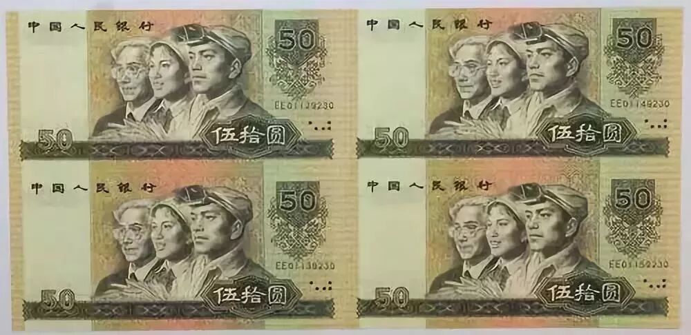 揭秘:第四套人民币推出过四连体钞,罪犯通过自行裁切四连体钞得到图案偏移的单钞。注意此币冠号,必然为EE等连体钞编号。