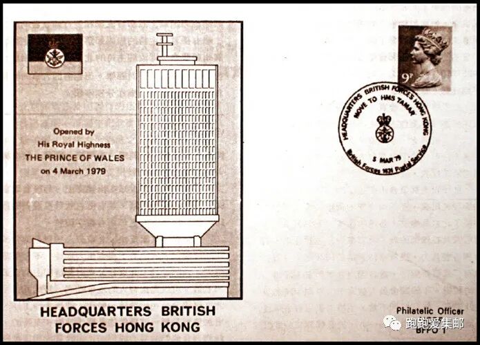 驻港英军邮局特为此发行1枚纪念封(下图),图案为大厦立面图,封上贴英国9便士“梅钦”普票1枚。
