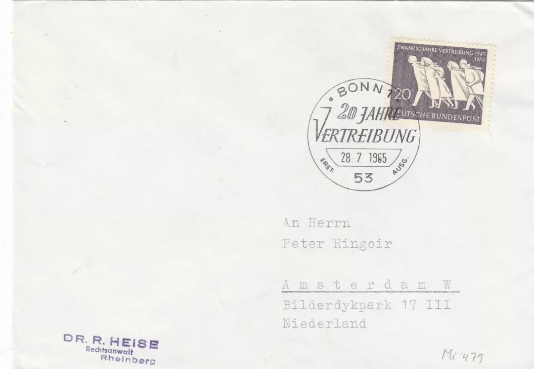 为了记住这段德国人和德意志族人被驱逐的历史,联邦德国邮政于1955年设计发行了“德国难民被驱逐10周年”纪念邮票,于1965年又再次发行了“德国难民被驱逐20周年纪念”邮票。
