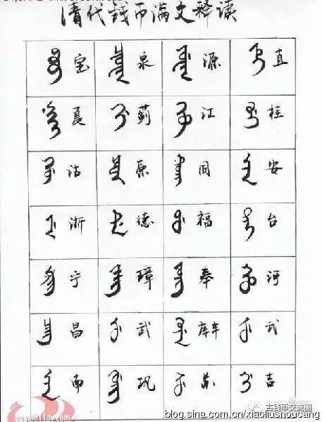 清代古钱币满汉文对照图谱,如下: