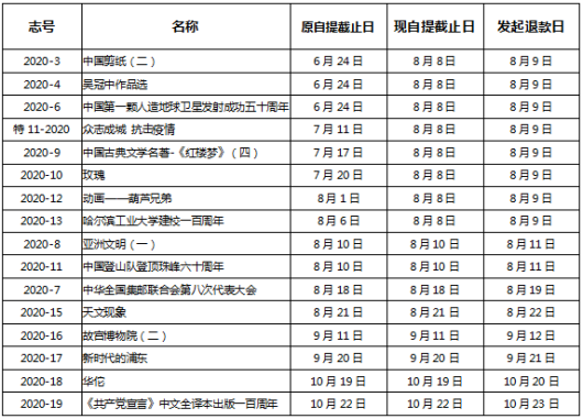 为方便用户自提,现延长上半年部分邮票的自提时间,相关自提截止日及退款日期详见下表: