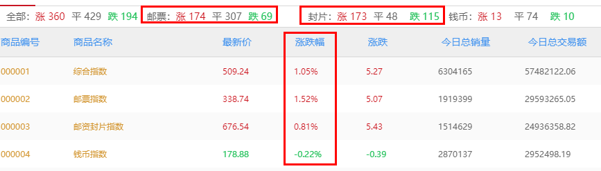 京东文娱寄卖商城商品行情(目前主要分析邮资封片、邮票和钱币板块),以下图表皆可点击放大查看。