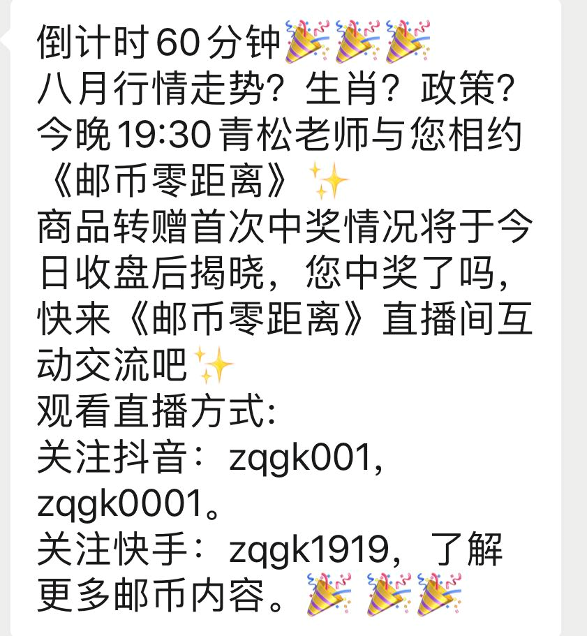 今晚,邮币零距离直播将邀请青松老师与大家探讨八月行情走势,以及生肖邮票表现和政策方面的可能变化。相关干货不容错过。