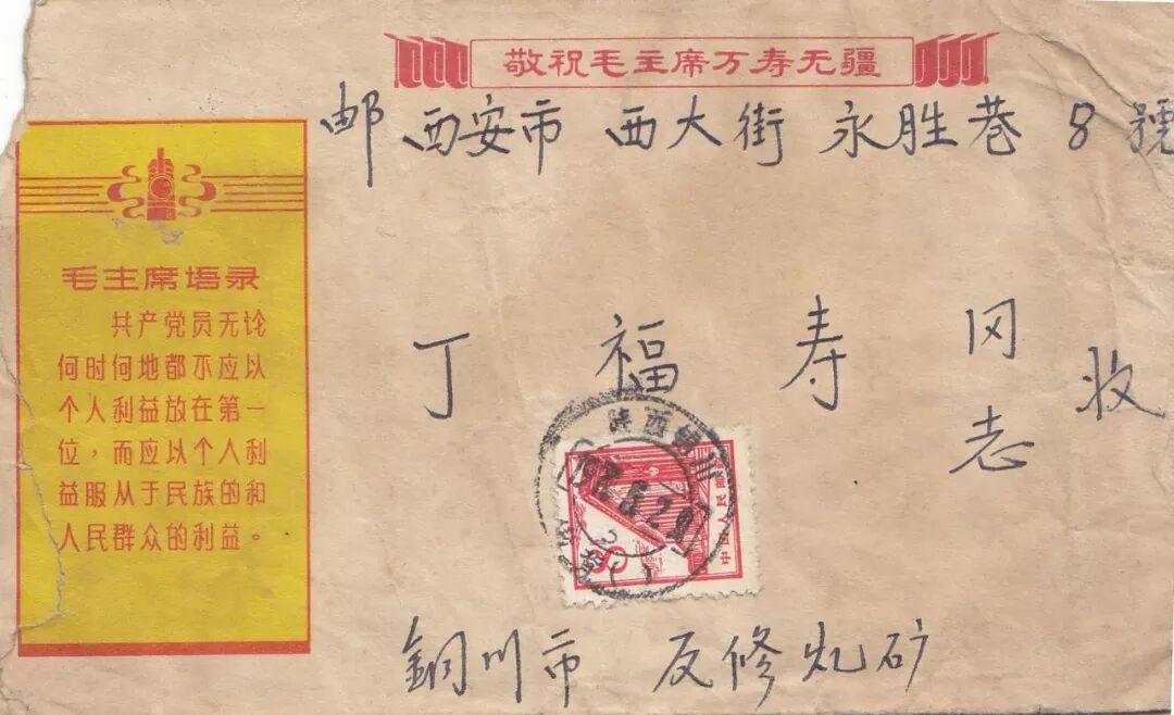 在上世纪中苏交恶的岁月,“反修”成了出现频率相当高的一个词汇,同时也出现了很多以“反修”命名的街道、乡镇、单位,例如下面这件实寄封,就从陕西铜川的“反修煤矿”寄出。