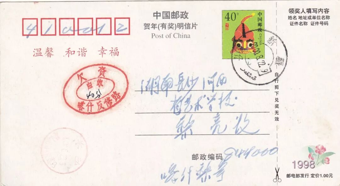 下面是加盖“喀什反修路”欠资戳的明信片,当年刻制的欠资副戳一直延用到了新世纪。