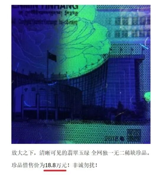 由于绿牡丹的荧光非常好看,存世量又极少,目前为止发现的只有2000多张。所以绿牡丹的价格非常高,目前市场价稳定在8000~9800元左右,具体价格看号码而定。