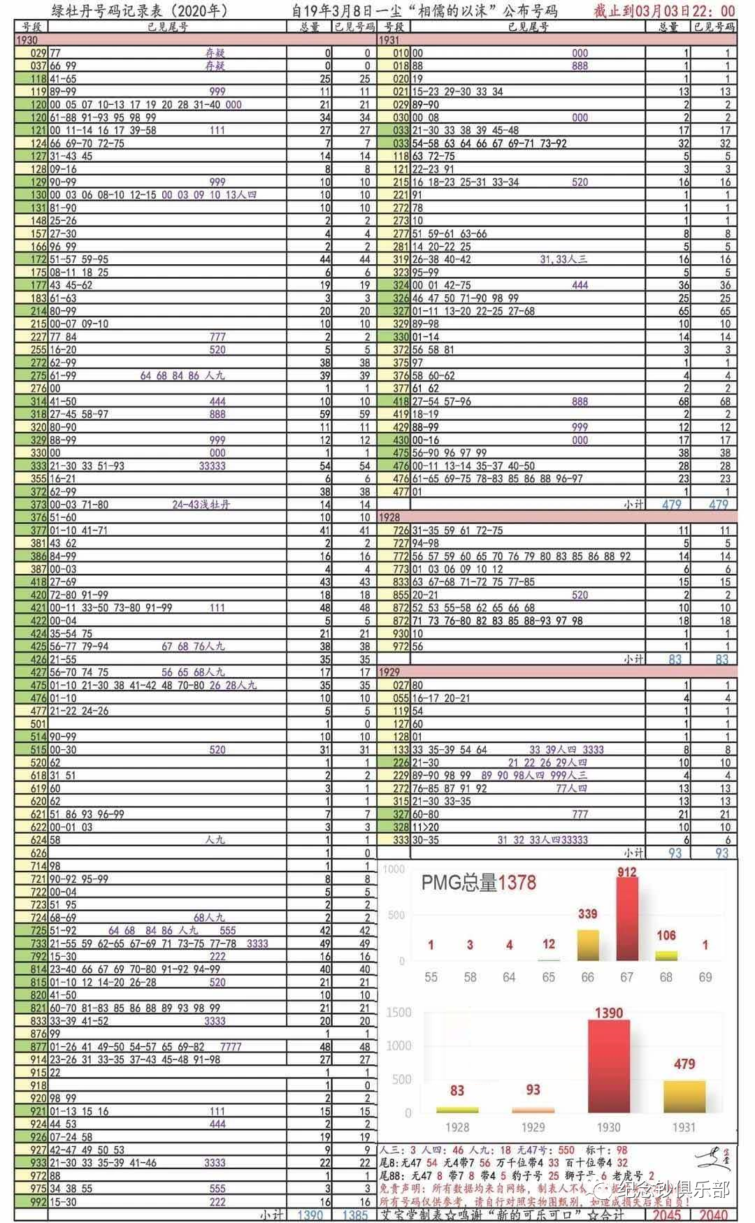 目前来看,绿牡丹号段主要分布在192、193号段,1928~1931号段比较多,其中1930号段发现的绿牡丹数量最多。
