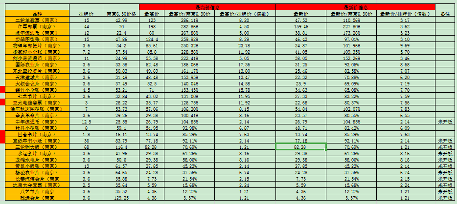 平移指数今日低开高走,盘中指数一度突破600点大关,距离历史高点654.07点仅一步之遥!截止今日《物理年邮资片》涨幅已近10倍,《国际农业片》涨幅已达9倍,《水运会片》、《龙滩水电片》涨幅已达8倍,详情见下图。