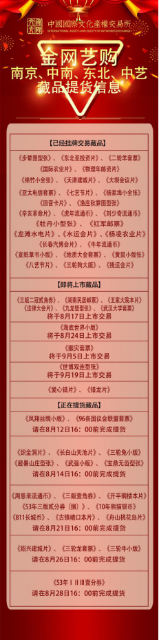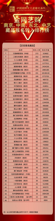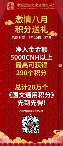 活动方面:(1)晚盘平移板块市值配送活动正式开启,活动时间:8月8日—8月15日,共计48.37万的原始藏品等您来抢!详细活动解读:【国际文交所】平移板块,再迎利好!市值配送升级解读!