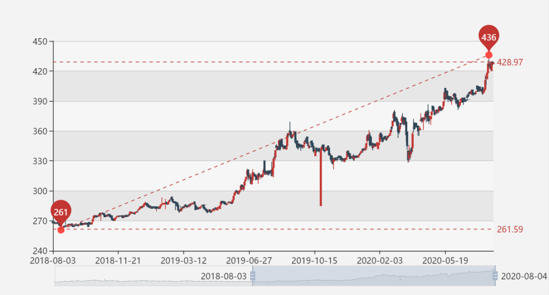2018年8月3日至2020年8月4日黄金行情趋势