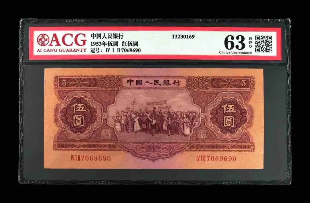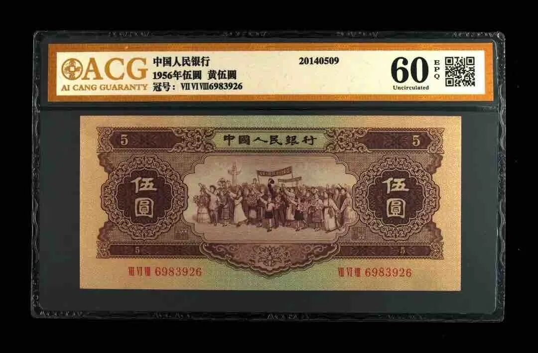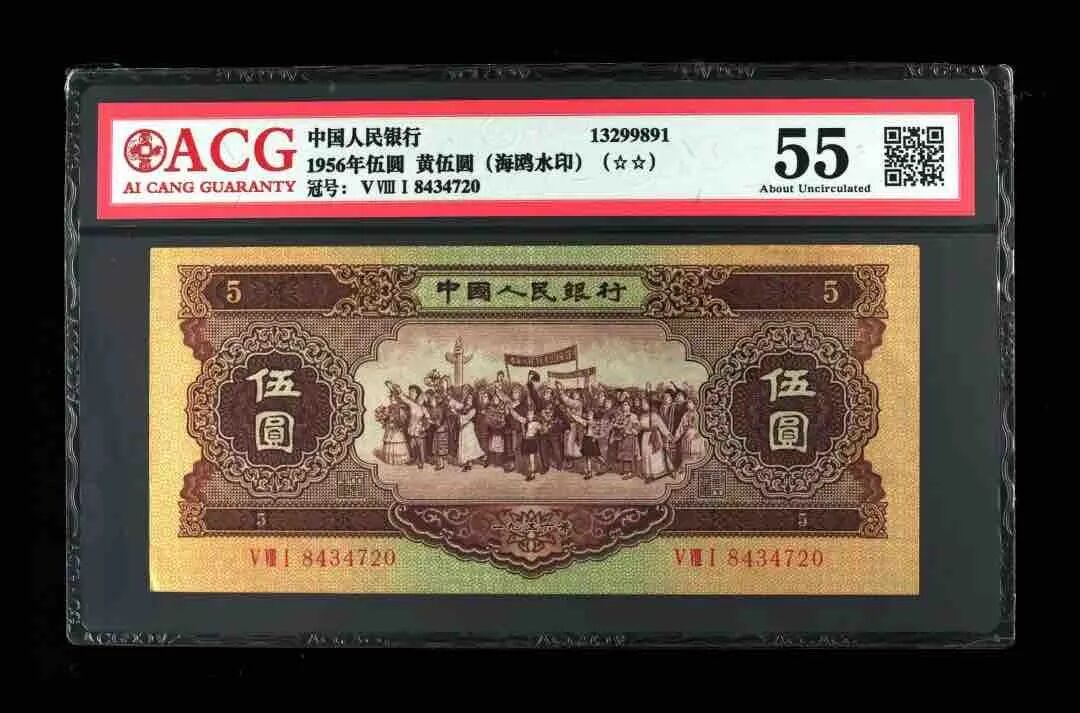 从存世量来看,黄伍圆多一些,最早发行、流通时间短、流通频繁的红伍圆则尤为稀少,而拥有特殊海鸥水印的海鸥五元本身发行量就很少。