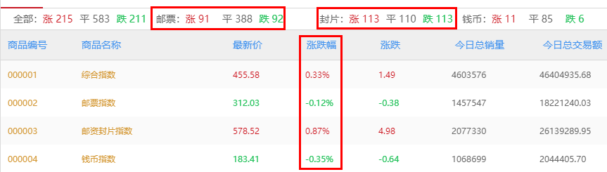 京东文娱寄卖商城商品行情(目前主要分析邮资封片、邮票和钱币板块),以下图表皆可点击放大查看。