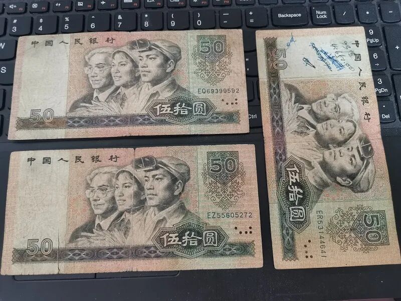 第三,大家家里还有再破一点的,也能理解。毕竟8050当年的使用还是很频繁的。要是手头找不到记账本了,随手在纸币上记账也是有的。