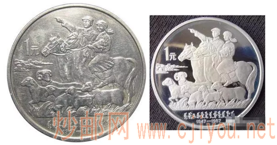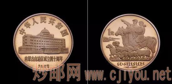 1987年,为了纪念内蒙古自治区成立40周年,中国人民银行发行了内蒙古普通纪念币,就是下图这种。