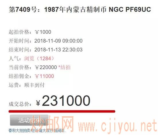 2018年,同样为NGC69的,以23.1万元的价格成交!