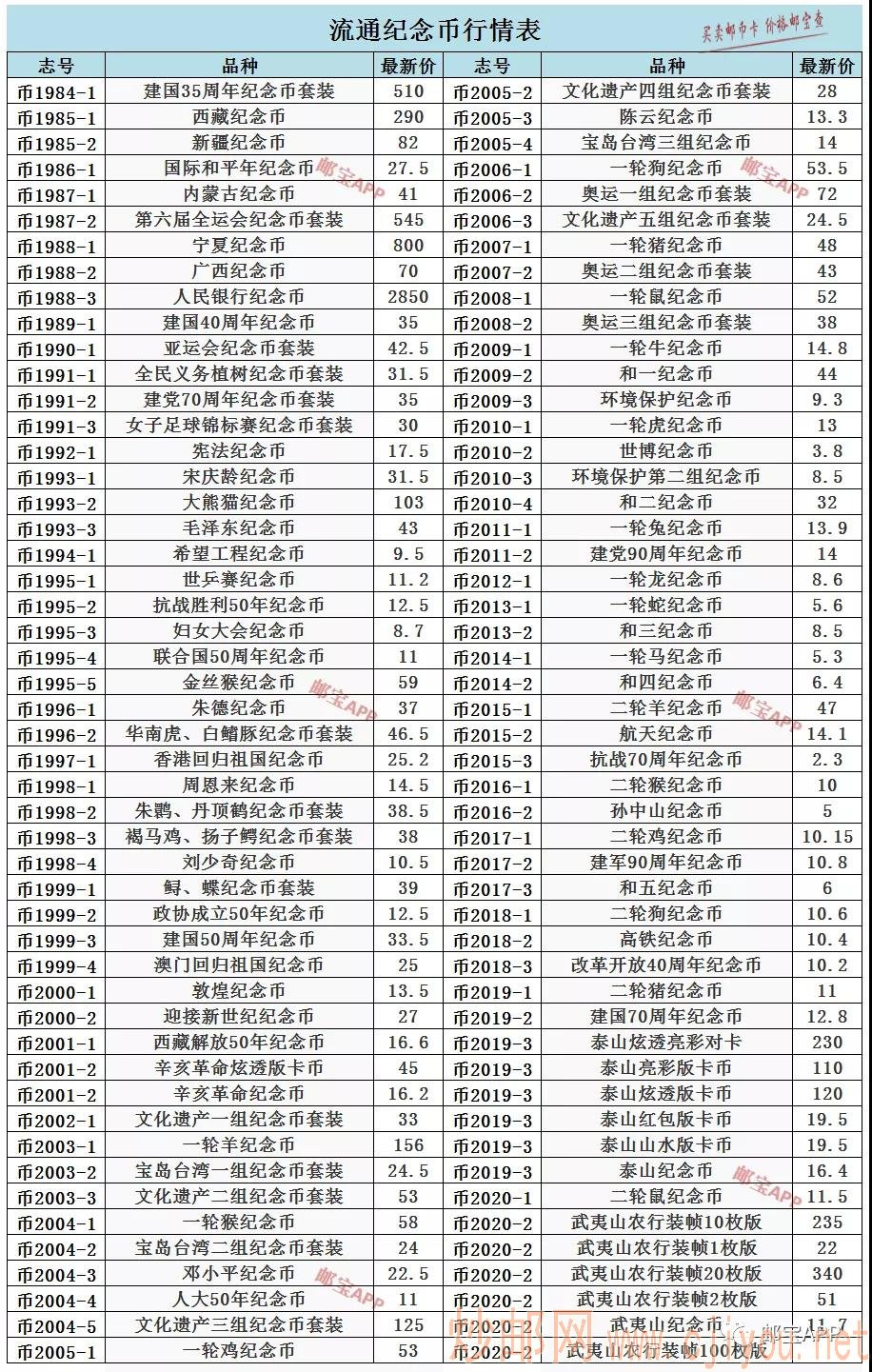 流通纪念币最新行情表