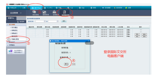 電腦客戶端操作確認方式:登錄電腦客戶端→客戶平臺→投資類系統→待確認增發,對“配送藏品、數量”進行確認操作。