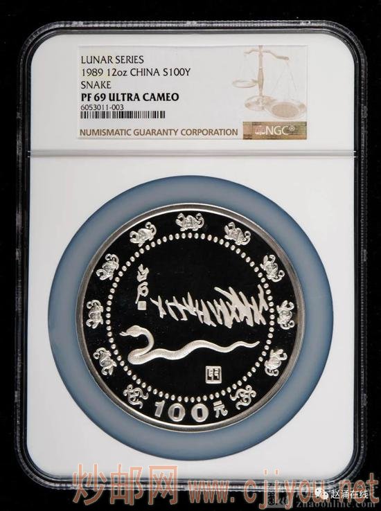 藏品编号:443521024 07 1989年己巳蛇年生肖12盎司精制银币一枚 (NGC PF69) 成交价格:8.71万元(成交时间:2021-02-22 20:51:41) ![]()
