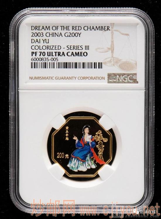 藏品编号:446951018 12 2003年中国古典文学名著《红楼梦》第(3)组-黛玉夺魁1/2盎司八边形精制彩金币一枚 (原盒、带证书、NGC PF70)成交价格:3.15万元(成交时间:2021-02-08 22:18:01) ![]()