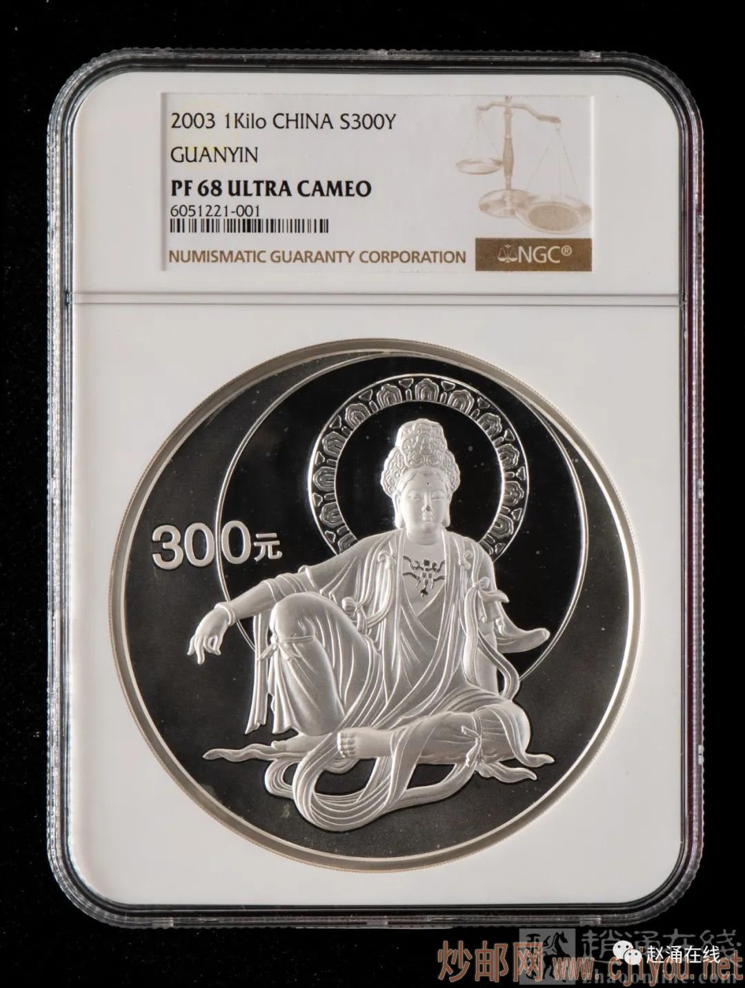 藏品编号:445000006 11 2003年观音1公斤精制银币一枚(带盒、NGC PF68) 成交价格:3.83万元 (成交时间:2021-02-22 20:52:21) ![]()