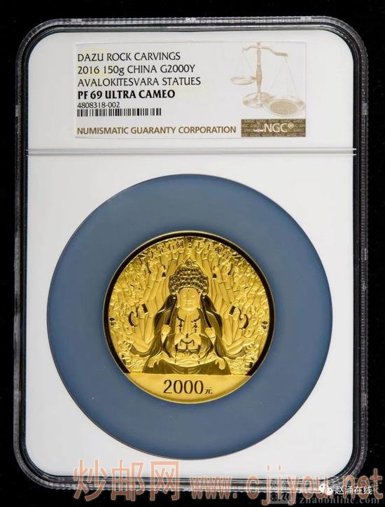 藏品编号:446769002 05 2016年世界遗产-大足石刻150克精制金币一枚(原盒、带证书、NGC PF69) 成交价格:14.91万元 (成交时间:2021-02-22 22:28:01) ![]()