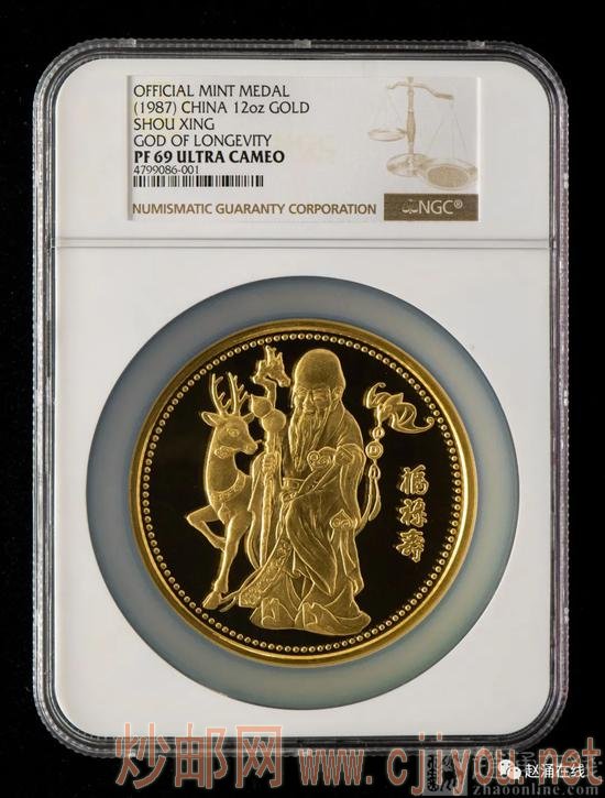 藏品编号:446251001 04 1987年寿星-福禄寿老寿星12盎司金章一枚 (NGC PF69) 成交价格:17.95万元 (成交时间:2021-02-22 22:04:01) ![]()
