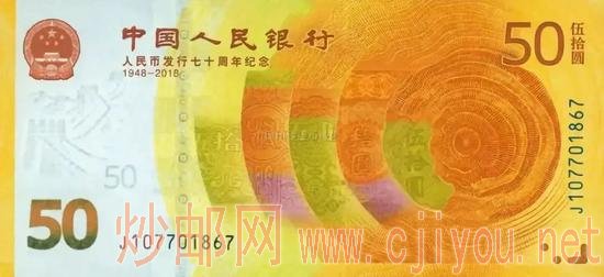 2018年,发行量1.2亿,面值50元的70钞面世,市场价格一路飙涨,行情最高时曾达90元一张!