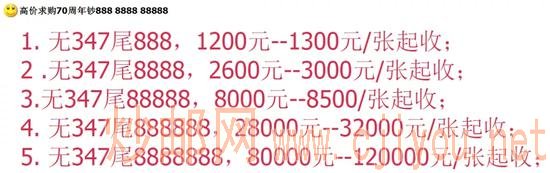 70钞行情比较出众的板块还是靓号。现在70钞靓号的市场行情依旧居高不下,豹子号溢价直接2倍起!