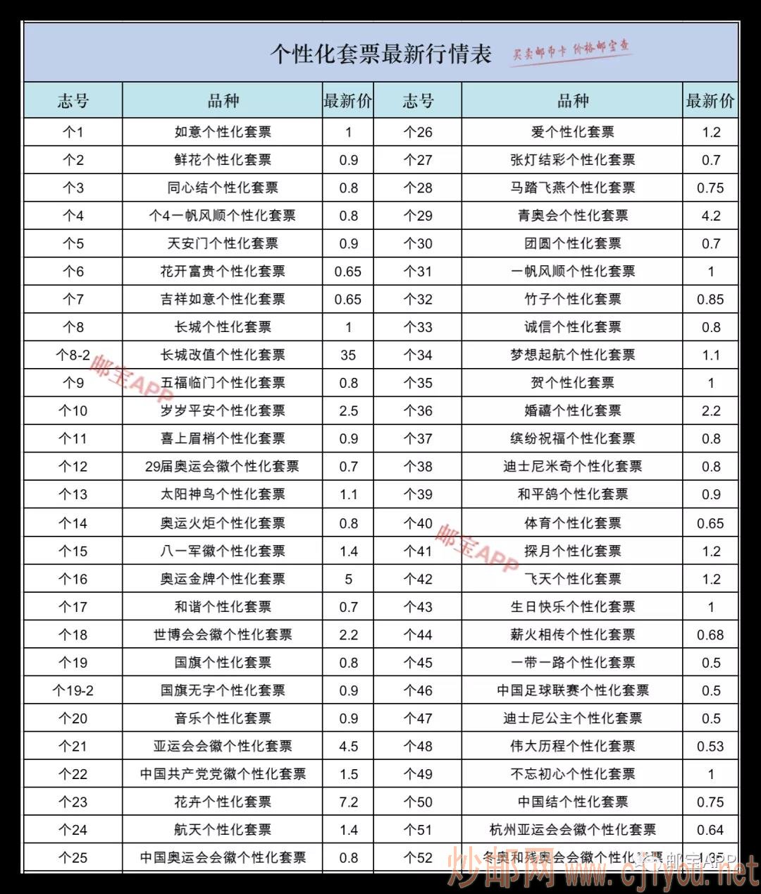 个性化套票最新行情 日期:2021-03-20 个性化套票最新行情 邮宝APP ·· 特别提醒:邮宝APP中所有产品的价格为市场大宗交易价格、且不含税点。零售价可能在此基础上浮动10-20%。另外,因篇幅所限,本文亦未列出邮币卡的所有品种。查询更多价格,请登录邮宝APP