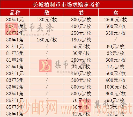 目前市场中长城币表现还是不错的。由于发行量相对较少,80年和83年的整体价格比较突出,小伙伴们也可以着重关注这两个年份的品种。