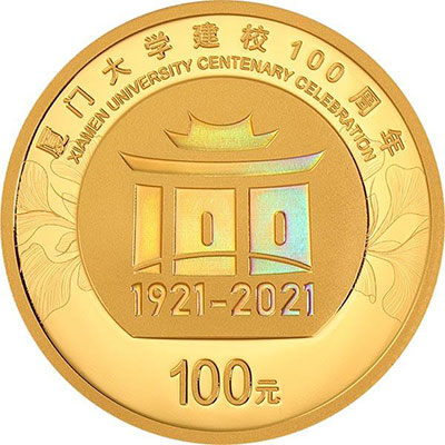 值此厦大百年芳华之际,我谨以8克圆形金质纪念币作为献礼,祝福厦门大学奋楫扬帆,勇立潮头。