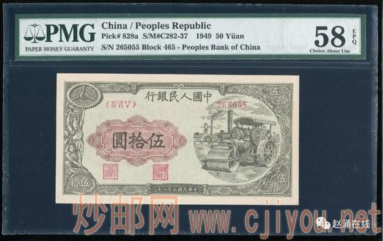 第一版人民币压路机50元一枚(ⅣⅥⅤ265055、PMG 58EPQ)