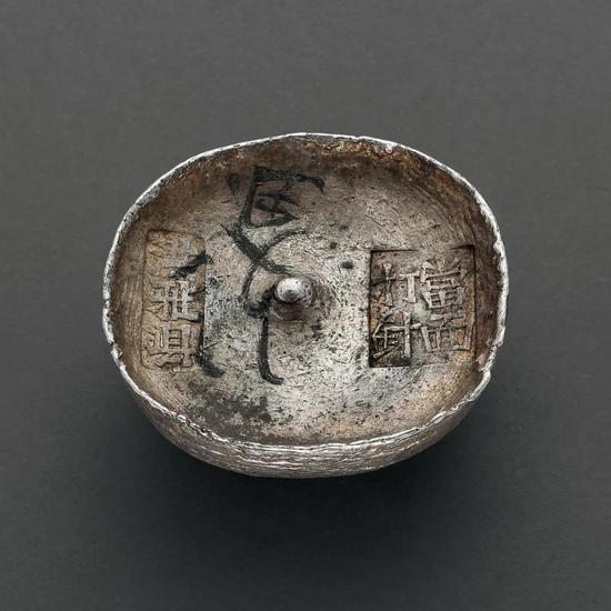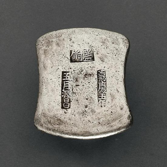 此处之“打针”并非医院的肌肉注射,而是指在银锭上钻出一个小洞,探验内部是否有夹心或杂质。清政府对各省铸锭的成色并无明确规定,各地平色不一,加之称量货币的自身缺陷,交易过程中,缺斤短两或成色不足之情形时有发生,甚至有不良商家铸造劣质银锭从中牟利。为避免因银锭成色参差而引起的纠纷,少数银铺将“当面打针”“当面针剪”“当面过针”等戳记直接打在银锭之上,意为所铸银锭保证成色,若有疑虑,可当面验色。打有此类戳印的银锭,一般都是民间商锭,此枚身为洪雅县地方存留银,盖有此类戳印,甚为少见。
