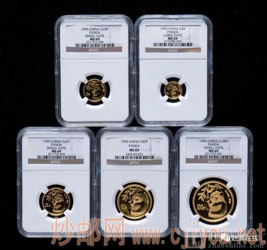 1995年熊猫普制金币五枚一套