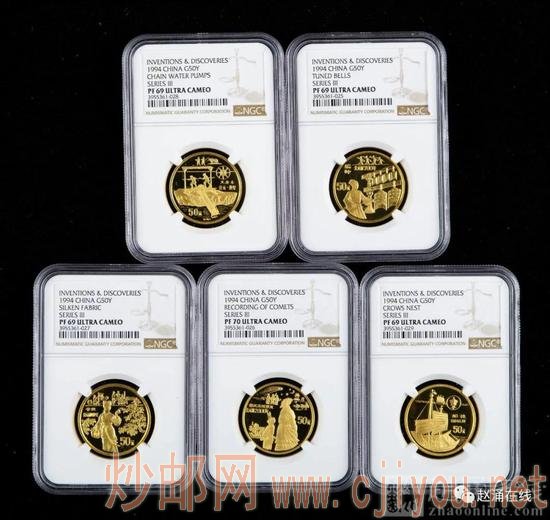 1994年中国古代科技发明发现第(3)组1/2盎司精制金币五枚一套