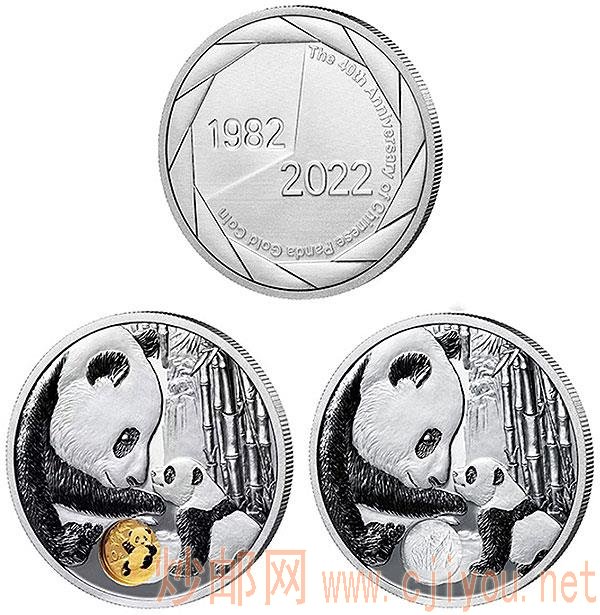 中国熊猫金币发行40周年纪念章由20克银质纪念章镶嵌1克熊猫金质纪念币组成,形制为圆形,直径40毫米,工艺为本色,其中纪念章采用99.9%足银、纪念币采用99.9%足金打造而成。该纪念章由上海造币有限公司铸造,北京开元发行并总经销。