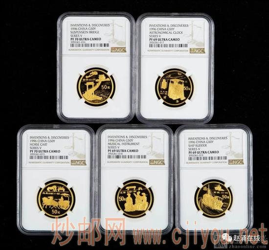 1996年中国古代科技发明发现第(5)组1/2盎司精制金币五枚一套