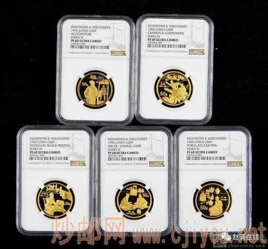 1995年中国古代科技发明发现第(4)组1/2盎司精制金币五枚一套