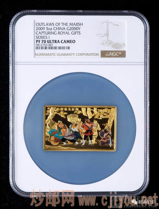 2009年中国古典文学名著《水浒传》第(1)组-智取生辰纲5盎司长方形精制彩金币一枚