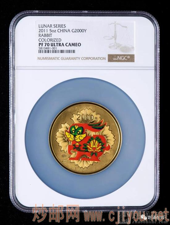 2011年辛卯兔年生肖5盎司精制彩金币一枚