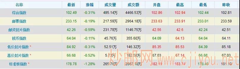一、京东今日大盘指数下跌-0.31%,涨跌平比为128:237:816,成交量继续缩减。标准版指数下跌-1.28%,涨跌平比为31:50:5,邮资封片涨跌平比为52:111:179。