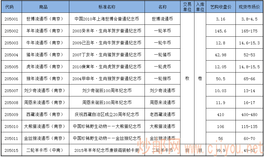6.28金网艺购盘面价与现货市场价对比(纪念币篇)
