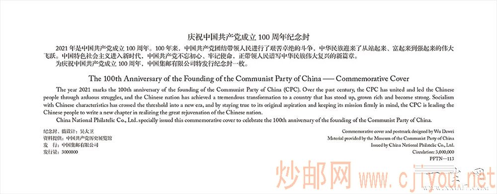 《中国共产党成立100周年》纪念邮票既是党史学习教育的艺术载体,也是集邮爱好者期盼的“国家名片”,题材重大,需求强烈,社会各界广泛关注。为满足广大党员和人民群众的购买与收藏需求,按照“依法依规、特事特办、提前预订、保证供应”的原则,由中国邮政提前向社会公众征订,国家邮政局将根据征订情况审定发行数量,既保证满足需求,又保证收藏价值。