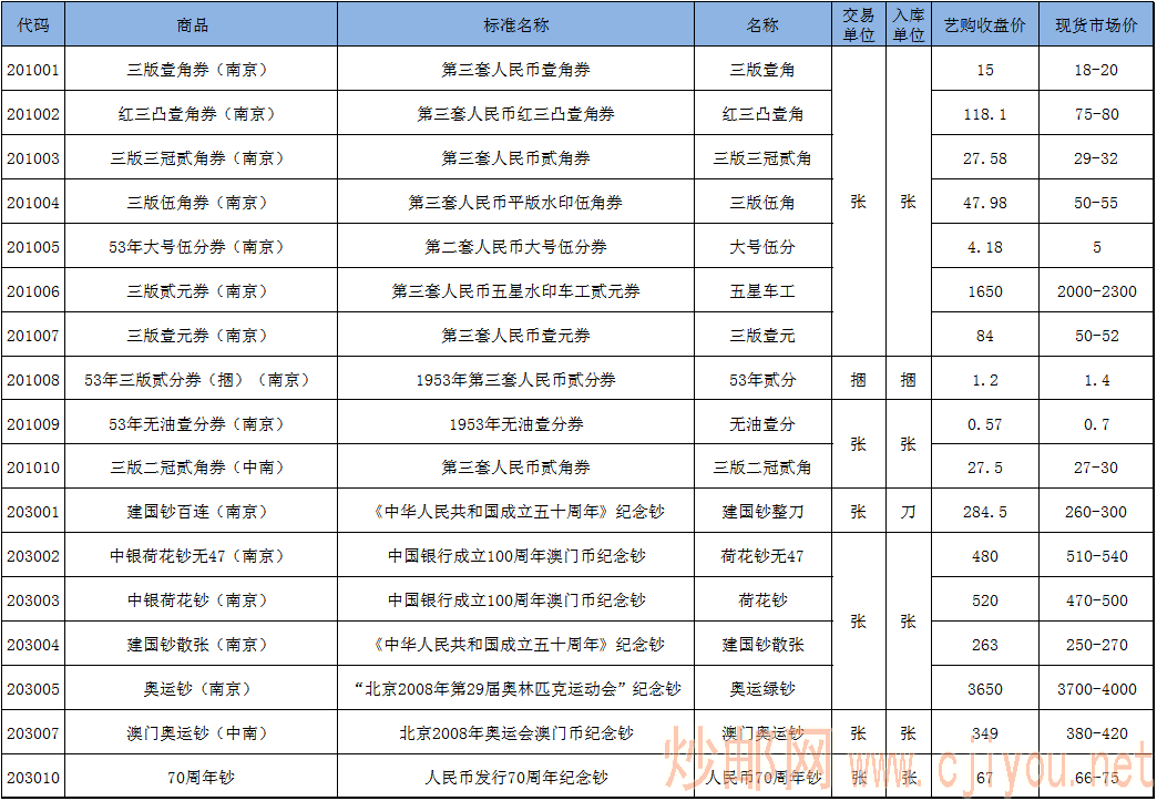 7.7金网艺购盘面价与现货市场价对比(纸钞篇)-摸鱼集藏
