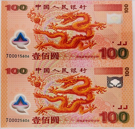 迎接新世纪纪念钞是中国第一次发行塑料材质的钞票,是货币发行的一次新的尝试。它的发行结束了中国没有设计印制人民币塑料钞票的历史,使中国跻身于世界上为数不多的能够设计、印制塑料钞票的国家和地区之一。