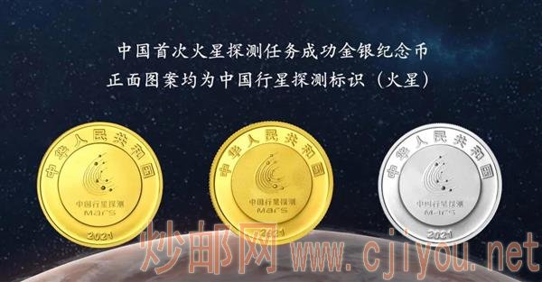 中国首次火星探测任务成功金银纪念币一套3枚,其中金质纪念币2枚,银质纪念币1枚,均为中华人民共和国法定货币。纪念币正面图案均为中国行星探测标识(火星),并刊国名、年号。