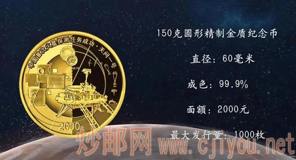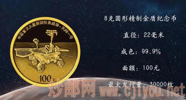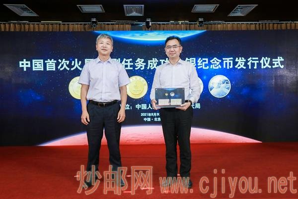 上启天问绕荧惑,雕镂祝融传世间。为纪念中国首次火星探测任务成功,8月30日,中国人民银行正式发行中国首次火星探测任务成功金银纪念币一套。
